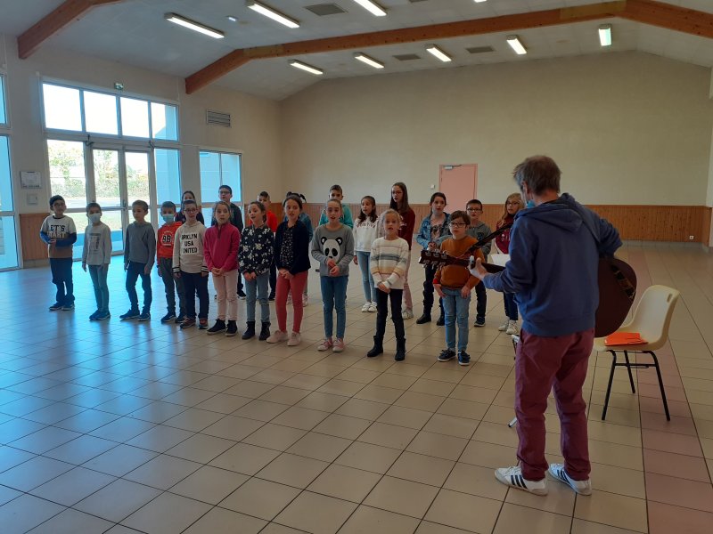 Les élèves de CM bénéficient de séances de musique avec Claude tous les mardis matins.