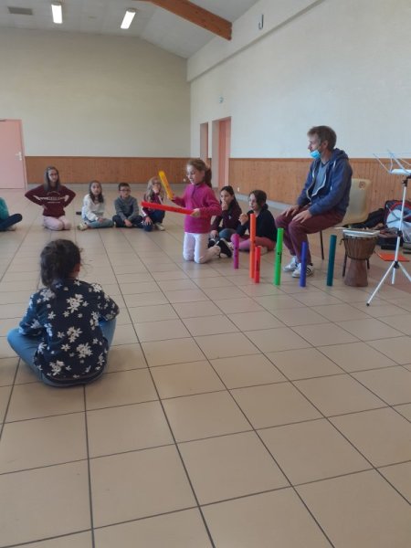 Les enfants apprécient beaucoup ces séances à la salle polyvalente car elles leur permettent d’apprendre différemment grâce à la musique.