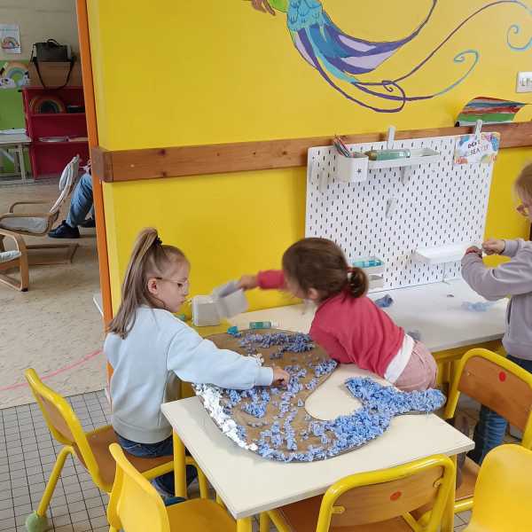 Les petits doigts se sont affairés à déchirer, froisser et coller les morceaux de papier, chacun apportant sa propre touche personnelle. Regardez par